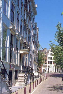 Il Brouwersgracht ha subito, nel tempo, la trasformazione da triste e fetida area industriale ed apprezzato quartiere abitativo, dove negli antichi magazzini sono stati ricavati appartamenti e locali per negozi. Le imposte di legno servivano a chiudere bene le finestre dei locali dov'erano stipate le merci. Al n. 198 nel secolo scorso vi andavano scuola i bambini poveri, oggi si trovano due larghi magazzini che fiancheggiano una costruzione più stretta, ai n. 204 e 206, erano depositi di grano che già allora avevano il nome, Hert (cervo).