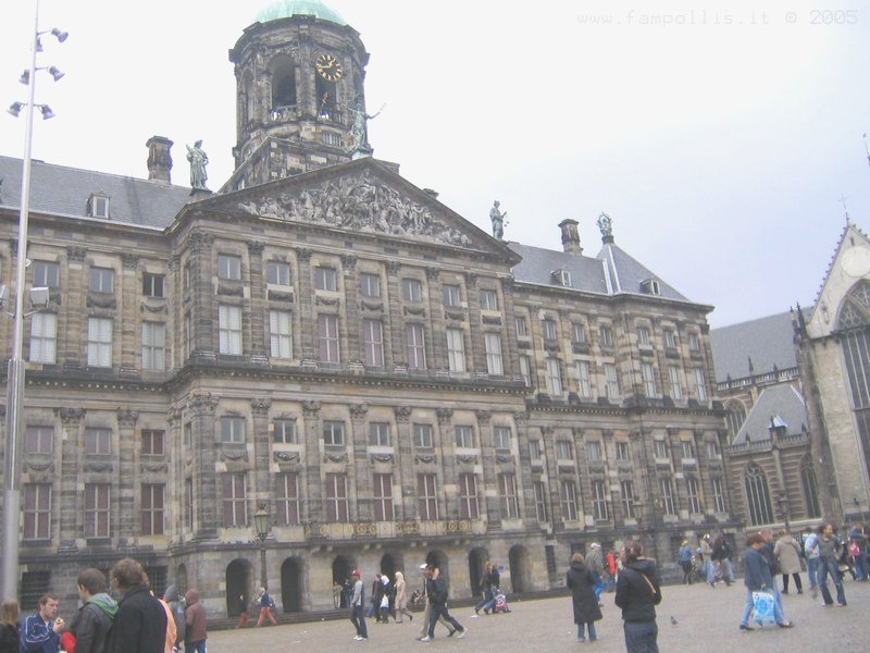 Il Palazzo Reale (Koninklijk Paleis) è un edificio monumentale, il maggiore di tutte le costruzioni civili di Amsterdam, in passato il più grande d'Europa. E' importante visitarlo per l'interesse storico, infatti l'ex municipio fu costruito nel XVII° secolo, all'epoca del massimo splendore commerciale della città, da Jacob Van Campen. Agli inizi del XIX° secolo, nel 1808, Luigi Bonaparte (Ludovico Napoleone) fece eseguire un piccolo lifting dopo un incendio e lo trasformò adibendolo a Palazzo Reale. Negli anni trenta del Novecento, dal 1935, il palazzo divenne residenza reale e proprietà dello Stato, ma la regina non vi soggiorna praticamente mai o non fa che brevi apparizioni. Manca di proposito un ingresso monumentale, l'ingresso piccolo doveva servire a rendere difficile l'accesso ad una folla di rivoltosi.
